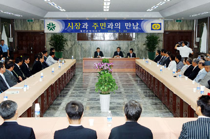 한편, 이날 시장과의 대화에 참여한 은행동 제1구역 주민들은 “현재 82%의 주민동의를 얻어 4개 건설 회사를 우선협상대상으로 지정 협상을 하고 있지만 시에서 원도심활성화에 대한 특례법을 만들어 놓고도 지구지정을 해주지 않아 중지된 상태”라며 시의 조속한 행정적 지원을 부탁했다.