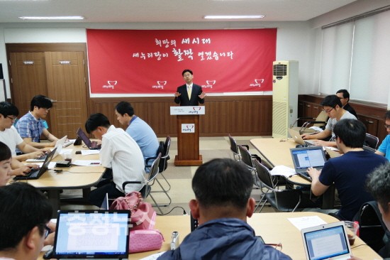 ▲ 새누리당 이영규 시당위원장이 21일 시당에서 기자회견을 하고 있다.