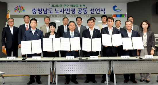 노사민정협의회에는 안희정 지사와 이주일 대전지방고용노동청장, 협의회 위원 등 30여명이 참석했으며, 도의 최저임금 준수 추진계획 보고와 공동선언문 서명, 공동캠페인 등의 순으로 진행됐다.