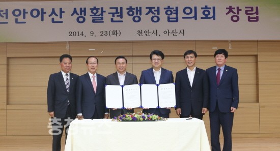 아산시와 천안시가 지난 23일 천안시청에서 ‘천안아산생활권 행정협의회’ 창립 행사를 갖고 양 시간 대승적 협력관계 유지를 위한 새로운 첫발을 내디뎠다.