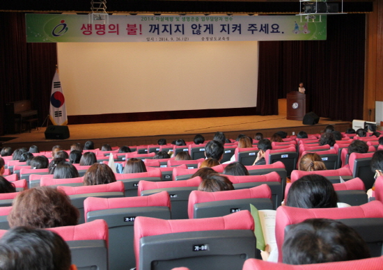 충남도교육청(교육감 김지철)은 26일, 공주 충남교육연수원에서 중ㆍ고등학교 업무담당 교사 320여 명을 대상으로 ‘자살예방 및 생명존중 연수’를 실시했다.