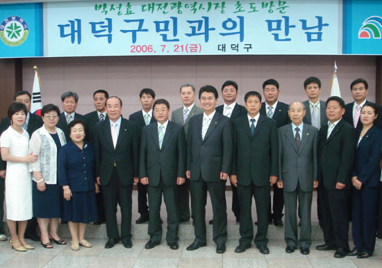 18일 동구를 시작으로 5개 자치구 초도방문에 나선 박성효 대전시장은 21일 오후, 마지막 일정으로 대덕구(청장 정용기)를 방문해 "주민들은 사람이 바뀌면 새로운 변화를 기대하기 때문에 부응해야 하는 책임이 따른다"고 강조했다.