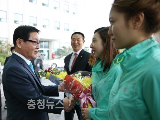 계룡시(시장 최홍묵)는 29일 2014인천아시안게임에서 우수한 성적을 거둔 계룡시청 소속 신아람, 최인정 선수에 대한 환영식을 가졌다.