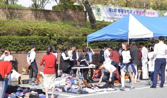 ▲ 배재대 21세기관 앞마당에서 열린 유학생돕기 바자회에 많은 학생들이 참가하고 있다.