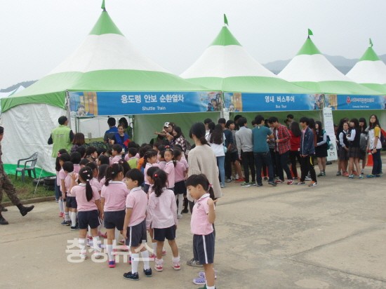 계룡군문화축제가 개막 3일째를 맞아 유치원·각급 학교, 단체 등의 관람객들로 넘쳐나고 있다.