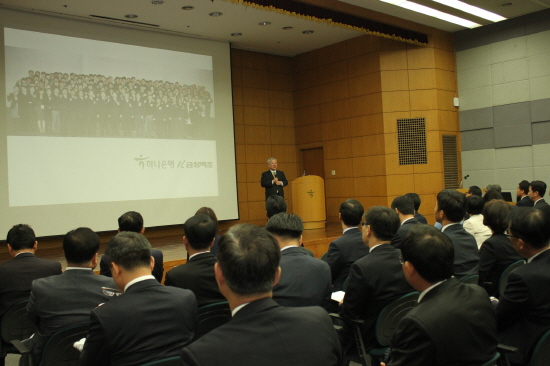 (주)금성백조주택 정성욱 회장이 7일, 하나은행 충청영업그룹(대표 함영주) 중구 오류동 사옥에서 대전충남북 지점장 및 기타관리자 120명을 대상으로 금성백조주택의 성공신화와 경영철학에 대해 1시간 가량 강연을 진행했다.
