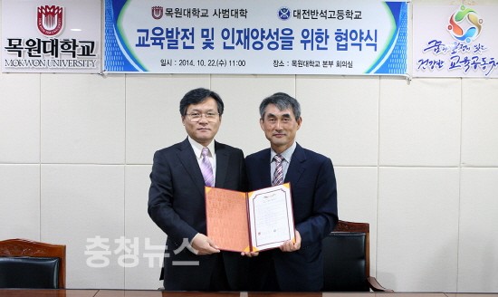 목원대(총장 박노권) 사범대학(학장 이종복)은 22일 교내 본부 회의실에서 대전 반석동에 위치한 대전반석고등학교(학교장 김형승)와 ‘교육발전과 인재양성을 위한 협약’을 체결했다.