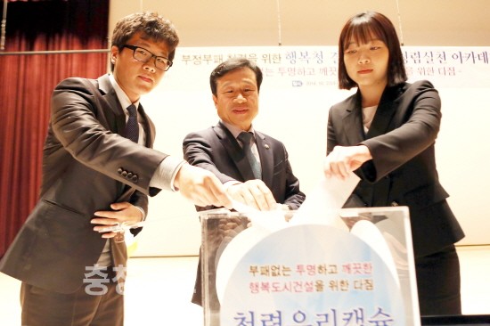 행정중심복합도시건설청(청장 이충재, 이하 행복청)은 지난 22일 정부세종청사 대강당에서 전 직원이 참여한 가운데 부정부패 척결 자정 결의대회를 개최했다.