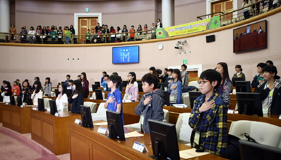 이날 어린이 의회에 참가한 학생들은 시의원과 간부 공무원으로 역할을 분담해 4개 상임위원회로 나누어 상임위원회별로 학생들이 직접 작성한 의안을 심사하고 다시 본회의에서 심의의결 하는 절차를 진행하면서 생생한 의정활동을 체험했다.