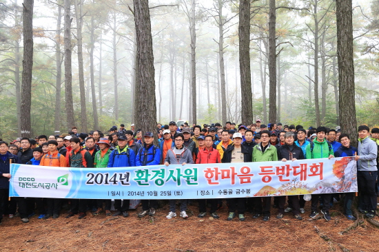 대전도시공사는 25일 계룡산 수통골에서 박남일사장과 환경사원 200여명이 참석한 가운데 2014년 환경사원 한마음등반대회를 겸한 체력단련행사를 개최했다.