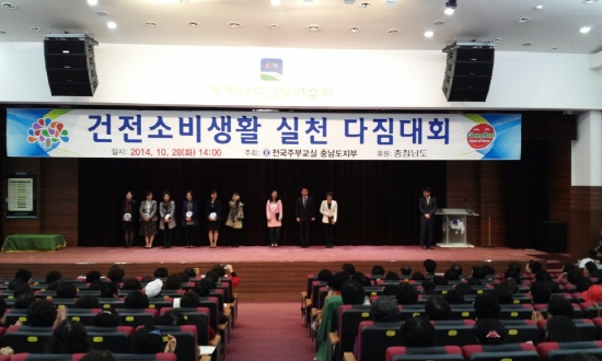 충남도는 28일 교통연수원에서 도내 소비자단체 회원, 주부, 공무원 등 500여 명이 참석한 가운데 ‘건전소비생활 실천 다짐대회’를 개최했다. 이번 행사는 착한가격·할인판매·옥외가격표시 업소의 이용 방안 모색을 통해 물가안정과 소비자 복지 지향적 소비생활 환경을 조성하기 위해 마련됐다.