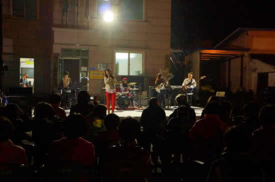 또한 25일 계룡면 경천리 시장광장에서는“아니 놀지 못하리라”를 주제로 마마밴드, 피크밴드, 공주여중밴드 공연과 경천중학교 학생들의 난타 공연을 비롯해 공주의 아름다운 풍경을 담긴 사진전시회와 함께 진행해 지역 주민의 큰 호응을 얻었다.