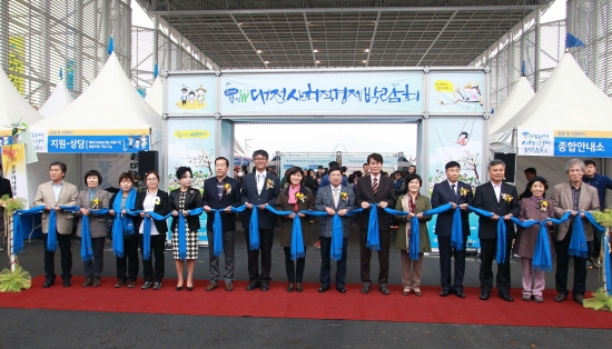 박람회 개막식은 지난 1일 행사장에 설치된 주무대에서 권선택 대전시장을 비롯한 김인식 시의회의장, 이주일 대전고용노동청장, 박정현시의원, 전문학시의원, 김동섭시의원, 정기현시의원 등 주요 내빈과 대전사회경제기업인, 일반관람객 등 2000여명이 참석한 가운데 주민 축제형 마당극으로 개최됐다.