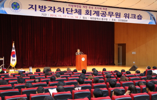 동구(구청장 한현택)는 지난 17일과 18일 이틀 동안 12층 공연장에서 안전행정부 주관으로 지방재정법 개정(2014.11.29 시행)에 따른 회계분야 주요 내용에 대해 진행한 전국 자치단체 회계담당 공무원 워크숍이 개최됐다.