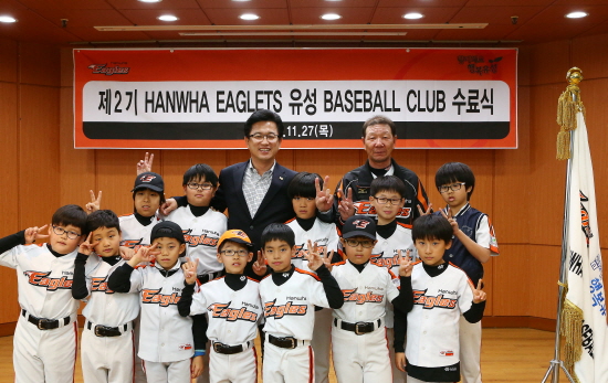 유성구는 27일 구청 대회의실에서 유소년야구단원 및 학부모 30여 명이 참석한 가운데 ‘2014 한화이글스 유성 유소년야구단’ 야구교실 수료식을 가졌다.