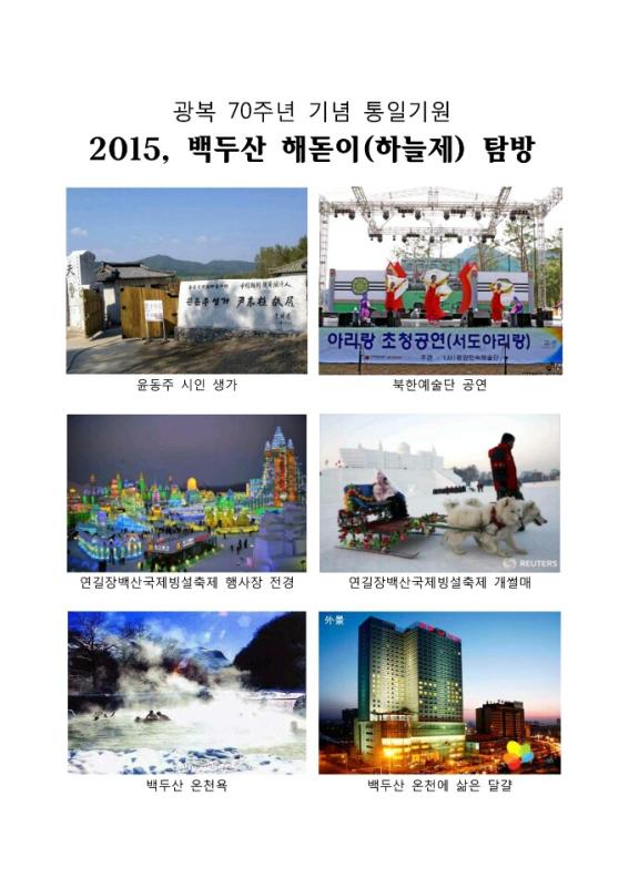 2015년 광복 70주년을 맞아 통일을 기원하는 대규모 백두산 천제 및 해돋이 행사 추진