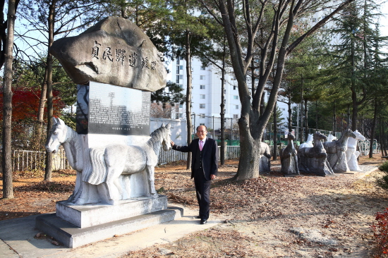 대전지역 교통의 요충지였던 ‘정민역(貞民驛)’의 역사적 가치를 알리기 위한 ‘정민역 유허비’와 말 조형물이 설치되어있는 전민동 아리고개 부근 엑스포아파트 후문에 지난달 26일 4필의 말 조형물이 추가로 설치 되었다.