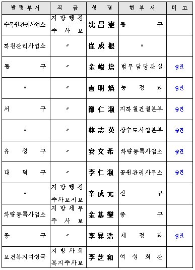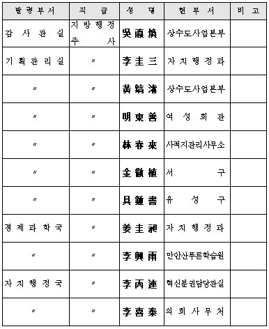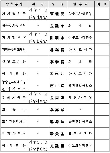市 6급이하 인사발령 7월31일자