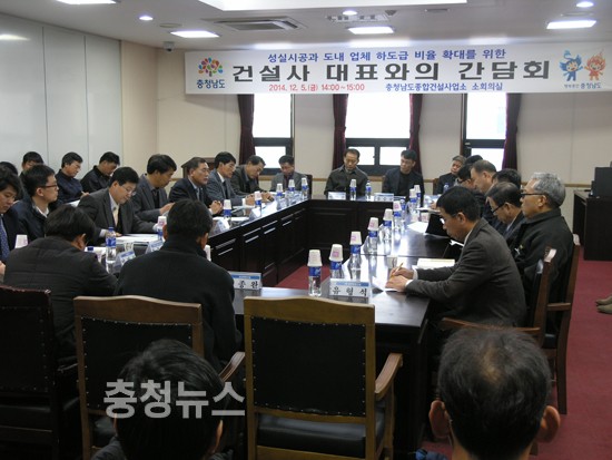 충남도 종합건설사업소(소장 남광현)는 5일 사업소 회의실에서 도내 건설공사 대표와의 간담회를 갖고 도내 업체의 하도급 확대방안을 모색했다.