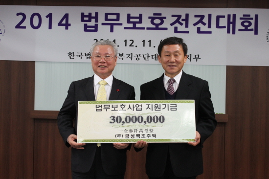 이 날 행사는 유공위원 표창과 법무보호 사업기금 전달 순으로 진행되었으며 (주)금성백조주택 정성욱 회장은 법무보호 보호위원연합회장으로 법무보호복지기금 3천만 원을 전달했다.