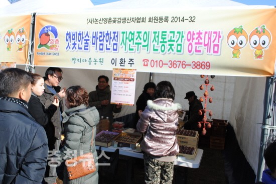 한편 지난 13일부터 이틀간 논산시 양촌면 양촌리에서 열린 2014 양촌곶감축제 올해 12회를 맞았으며 풍부한 일조량과 선선한 북서풍, 높은 일교차의 자연건조과정으로 만들어지는 쫀득한 명품곶감을 홍보하고, 양촌에서 생산되는 특산물의 우수성을 널리 알리기 위해 매년 개최하는 지역의 대표 겨울축제다.