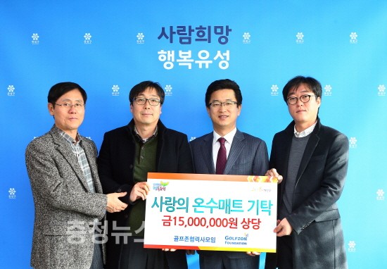 골프존 협력사가 16일 유성구를 방문해 유성구행복누리재단(이사장 김홍혜)에 온수매트 80개(1,500만원 상당)을 기탁했다.