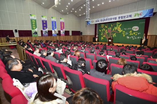 충청남도농업기술원은 24일 기술원 대강당에서 농촌진흥 분야 공무원 및 농업인 등 300여 명이 참석한 가운데 ‘2014년 농촌진흥사업 종합보고회’를 가졌다고 밝혔다.