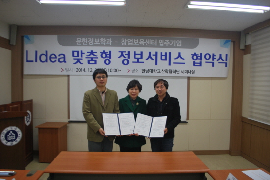 지난 23일 한남대 대덕밸리캠퍼스 산학협력단 세미나실에서는 이색 협약체결식이 열렸다. 산학협력 협약은 일반적으로 대학의 이공계열과 기업 사이에 이뤄지는데 이날 협약은 문과대학의 문헌정보학과와 기업들 간의 협약이어서 주목을 끌었다.