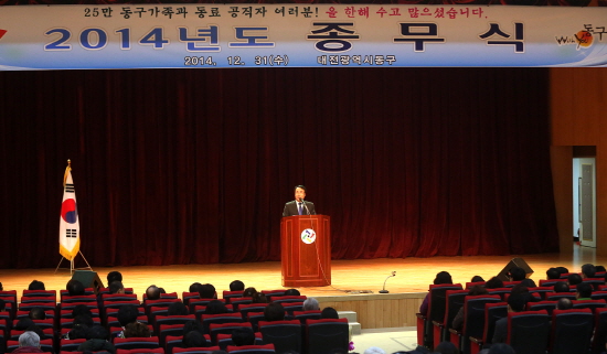 대전 동구(구청장 한현택)는 31일, 12층 공연장에서 동구청 직원과 주민 약 500여명이 모인자리에서 2014년 종무식을 갖고 갑오년을 마무리 했다.