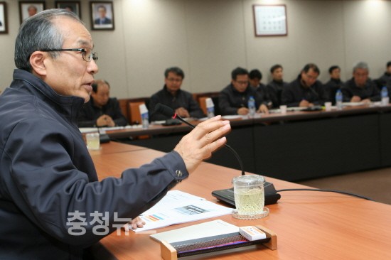 ▲ 대전도시철도공사 박상덕 사장이 15일 ‘2014년도 이상현상 종합분석회의’를 주재하고 있다. 박 사장은 “사건 사고 예측과 예방,사고 수습과정을 빈틈없이 수행할 수 있는 역량을 키워 최고 수준의 안전으로 무사고 운행기록을 이어가야한다”고 강조했다.