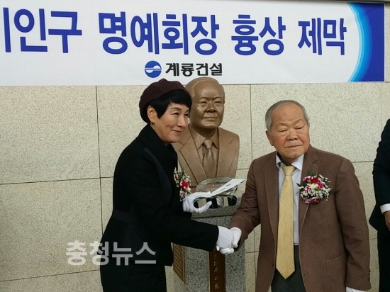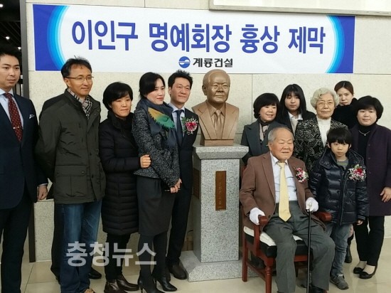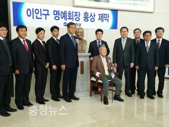 탄방동 둔산 신사옥 이전 1주년 맞아, 이인구 회장 흉상 제막식