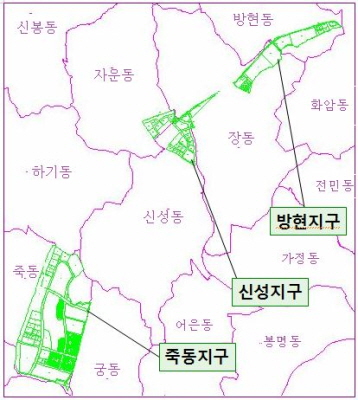 이번에 새롭게 확정된 토지는 죽동 385필지(805,345㎡)와 신성동 31필지(115,074.9㎡), 장동 33필지(149,758.3㎡), 방현동 21필지(109,356.2㎡), 자운동 13필지(61,153.5㎡) 이다.