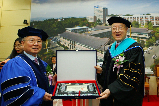 이날 명예박사학위 수여식에는 염홍철 전 대전시장과 변평섭 전 세종시부시장이 참석해 축사를 했다.