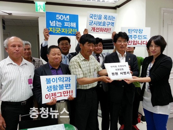 ▲ 탄약창 주변지역 지원 법제화 촉구위해 주민청원을 제출하는 박완주 의원