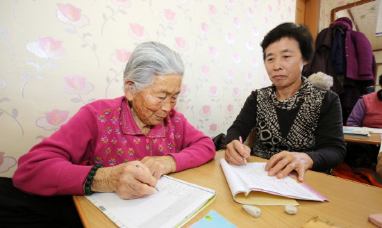 김 할머니는 “한 자 한 자 글씨를 쓰다 보면 시간 가는 줄 모른다.”며 “얼른 글을 깨우쳐 버스를 타고 장도 보러 나가고 자식들 집에도 찾아가고 싶다.”고 말했다. 이 배움교실에서는 김 할머니를 포함해 26명의 늦깍이 학생들이 매주 2회 4시간씩 한글을 배우고 있다.