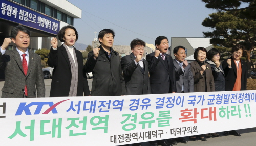 박수범 대덕구청장은 이날 구의회와 함께 결의대회를 가진 데 이어 서대전역에서 열린 새누리당 대전시당 주최로 ‘KTX 서대전역 경유 관철 결의대회’에도 참석했다.