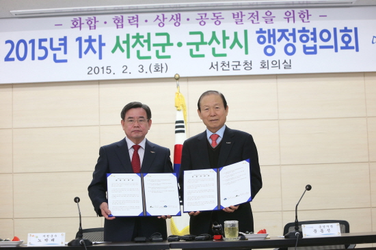 서천군(군수 노박래)은 3일 군산시와의 화합과 상생발전을 위해 서천군청 회의실에서 2015년 제1차 행정협의회를 운영했다.