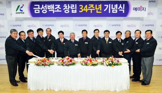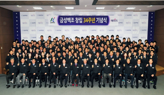 정성욱 회장과 금성백조 임직원들은 창립 34주년 떡 케이크를 절단 후 2015년 구호 제창을 하는 것으로 기념식을 간소히 마무리 하였다.