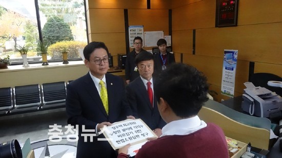 애초에 통합청주시는 법 상에도 행정적, 재정적 지원이 가능하다고 명시해 놨고, 박근혜 대통령도 출범식에 오셔서 필요한 지원을 다하겠다고 약속했었다. 그런데 정부가 계속 지원에 미온적 반응을 보여, 10월 29일에는 이승훈 청주시장과 함께 홍문표 예결위원장실을 방문하여 통합청주시 지원 당위성을 설명하고, 11월 4일에는 대정부질문까지 한 것이다.
