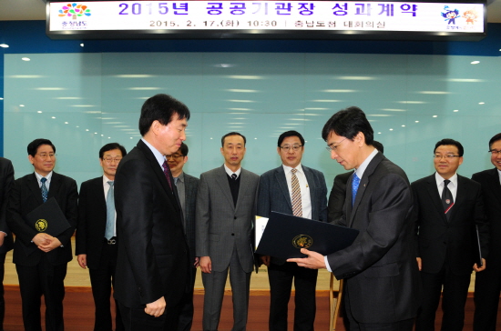 이번 성과 계약 체결 대상은 총 21개 공공기관 중 기관장을 공모 중인 충남역사문화연구원과 공무원이 원장을 겸직하고 있는 서산의료원 등 6개 기관을 제외한 15개 기관이다.