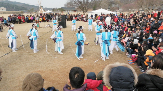해미읍성 곳곳에서 펼쳐진 줄타기와 모듬북 등 전통문화공연에는 잊혀져 가는 고유의 세시풍속을 즐기려는 많은 관람객이 모였다.