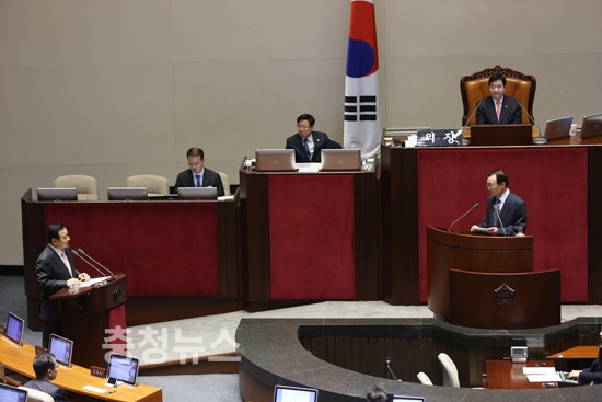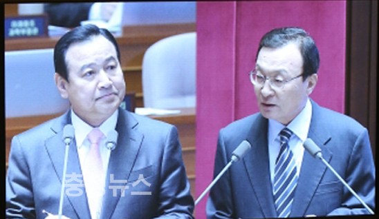 충남 청양출신 새정치민주연합 이해찬 국회의원(전직 총리)과 현직 이완구 국무총리가 국회 정치•외교•통일•안보분야 대정부질문에서 고향 후배인 이 총리를 겨냥해 기선 잡기에 나섰다.