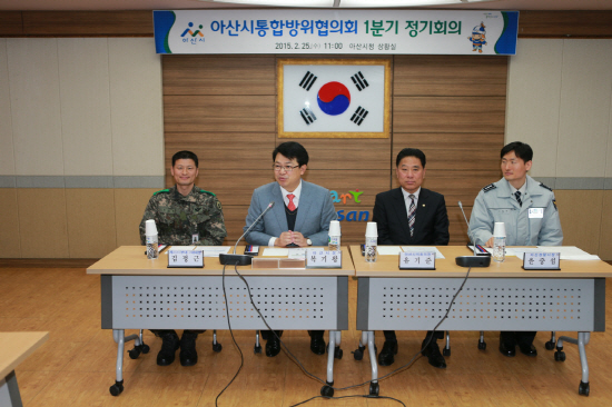 아산시는 지난 25일 아산시청 상황실에서 최상의 향토방위 육성과 민·관·군·경의 협조체계 강화로 완벽한 지역방위 태세 점검과 안보협력을 다지기 위해 2015년 1분기 아산시통합방위협의회 회의를 가졌다.