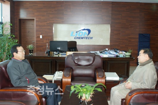 ▲ 김거수 대표기자와 박희원 라이온캠텍 회장