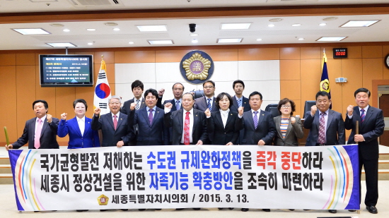 한편, 세종특별자치시의회는 이날 본회의에서 채택한 ‘수도권규제 완화정책 중단 촉구 결의안’ 을 청와대를 비롯하여 국회, 행정자치부, 국토교통부 등에 제출할 계획이다.