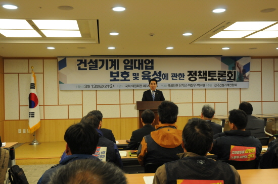 새정치민주연합 신기남 의원(서울 강서갑), 새누리당 이장우 의원(대전 중구) 그리고 새정치민주연합 박수현 의원(충남 공주)이 공동 주최하고 전국건설기계연합회가 주관한 이날 토론회는 많은 건설기계 노동자들의 관심으로 성황리에 마쳐 열악한 노동환경의 심각성을 다시 한 번 널리 알린 계기가 되었다.