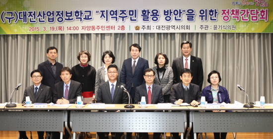 대전시의회는 19일 동구 자양동주민센터에서 ‘(구)대전산업정보학교 지역주민활용 방안을 위한 간담회’를 개최했다. 윤기식의원(새정치연합, 동구2, 왼쪽에서 세번째) 주관으로 열린 이날 간담회는 대전산업정보학교가 용문동으로 이전함에 따라 자양동 소재 대전산업정보학교 부지를 지역주민이 활용하는 방안을 도출하고자 마련됐다.
