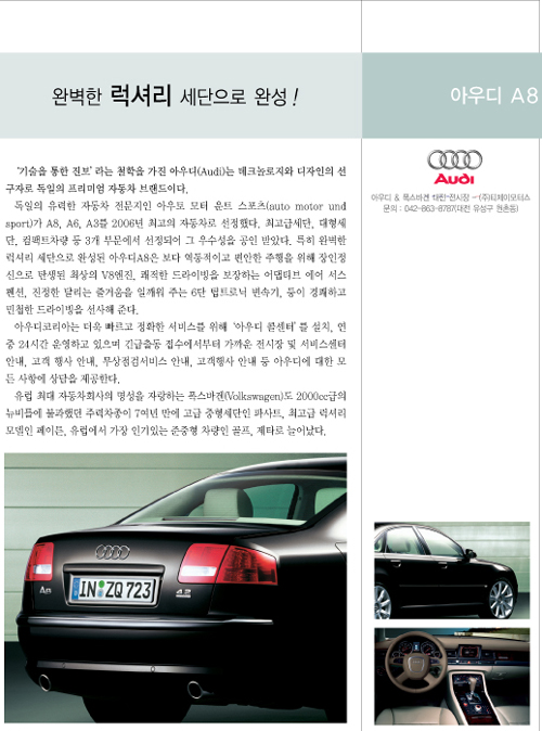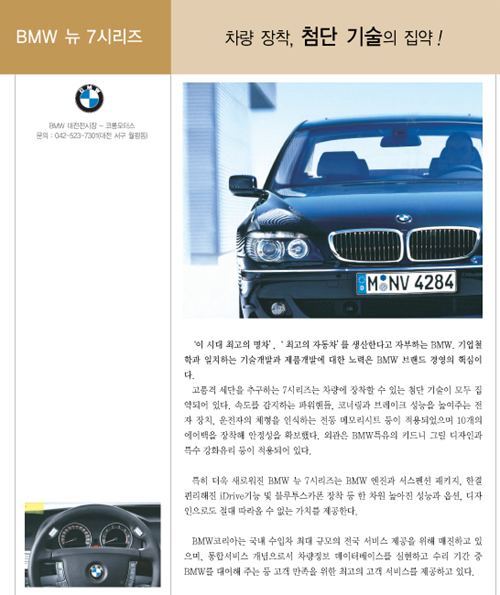 버스전용차로며 지하철 개통 등 웬만하면 도로가 한산할 법도 하겠다…고 생각하면 오산. 거리는 오늘도 자가용으로 가득 차 있고, 신호를 몇 번 받아야 지날 수 있을 정도로 체증이 심하다. 그런데 이 많은 차들 가운데 유독 눈길을 끄는 것들이 있으니 바로 겉모양부터 특이한 수입자동차. 과거 드문드문 보이던 수입자동차가 한 대 두 대 늘기 시작하더니 요즘은 어디에서나 쉽게 볼 수 있다. 수입 자동차 수요가 늘면서 최근 대전에도 수입자동차 전문매장이 속속 들어서고 있는데…. 물론 비싸기야 하지만 그 만큼 제 역할을 톡톡히 해낸다는 것이 자동차 소유주들의 주장이다. 각 매장의 딜러들이 적극 추천한 수입 자동차의 매력, 지금부터 살펴보자.