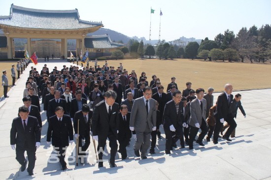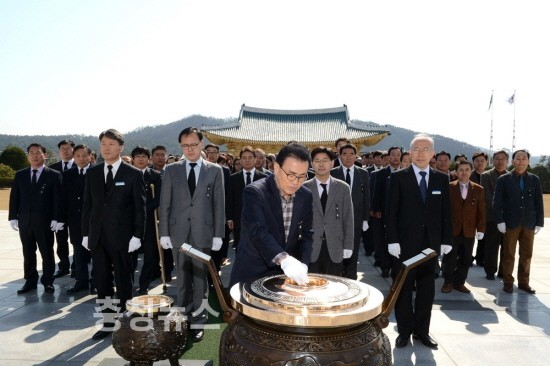 새누리당 대전,세종,충남 시․도당 주요당직자들은 24일(화) 오전 10시 30분, 천안함 5주기를 맞아 국립대전현충원 천안함 46용사 묘역을 찾아 참배하고 안보의식을 고취했다. 또, 침몰된 천안함의 수색 작전을 펼치던 중 숨진, 故 한주호 준위 묘역을 찾아 참배했다.