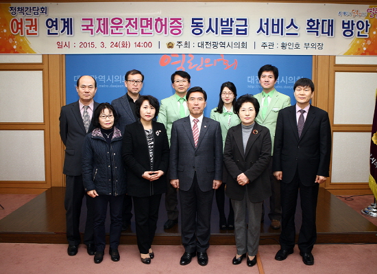 대전시의회(의장 김인식) 황인호부의장(새정치민주연합, 동구1)은 24일 시의회 대회의실에서 ‘여권 연계 국제운전면허증 동시발급 서비스 확대 방안’을 위한 정책간담회를 주관했다.